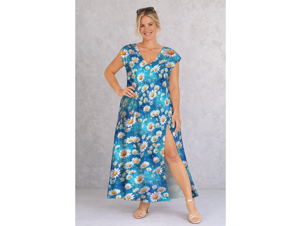 Bavlněný úplet DELUXE Digitisk 52858_A kopretina modrá