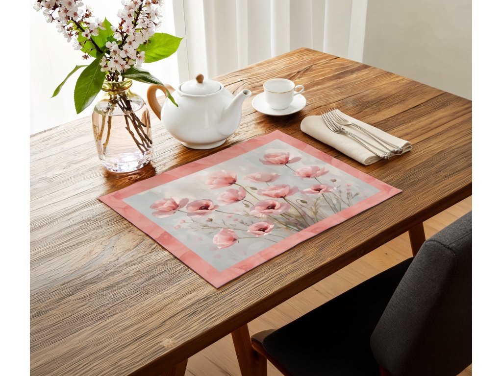 Kočárkovina prostírání peachy poppies