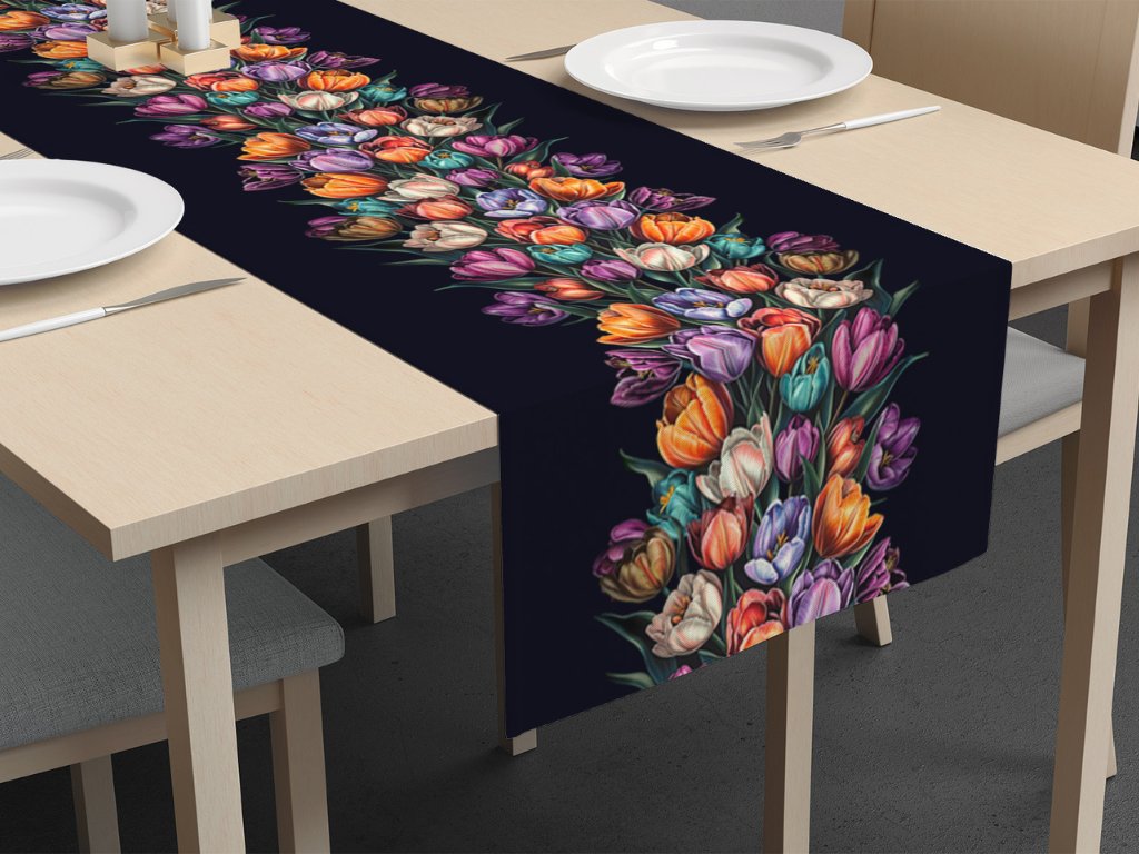 Polylen běhoun tulipány - černá