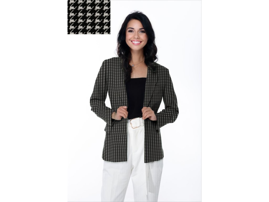 Žakár s kohoutí stopou je elegantní a nadčasová látka s vetkaným vzorem, který není potištěný, ale tvoří přirozenou součást struktury materiálu.